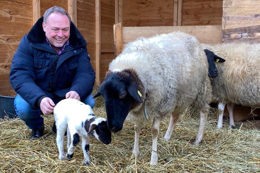 SPD-Stadtrat Markus Käser zu Besuch im Schafstall.