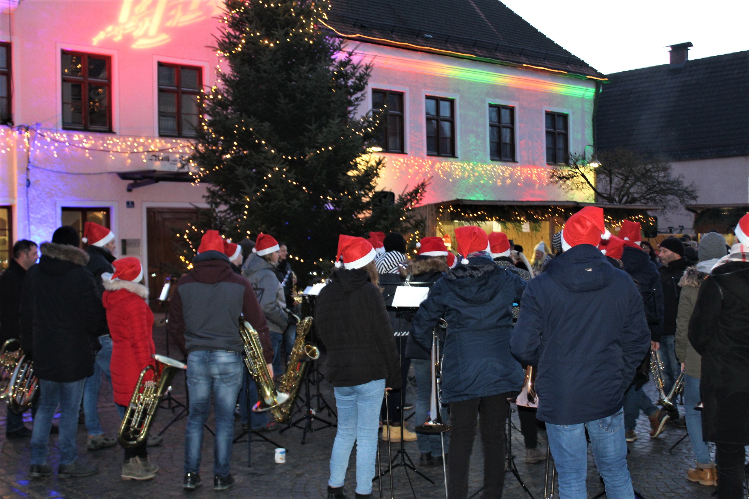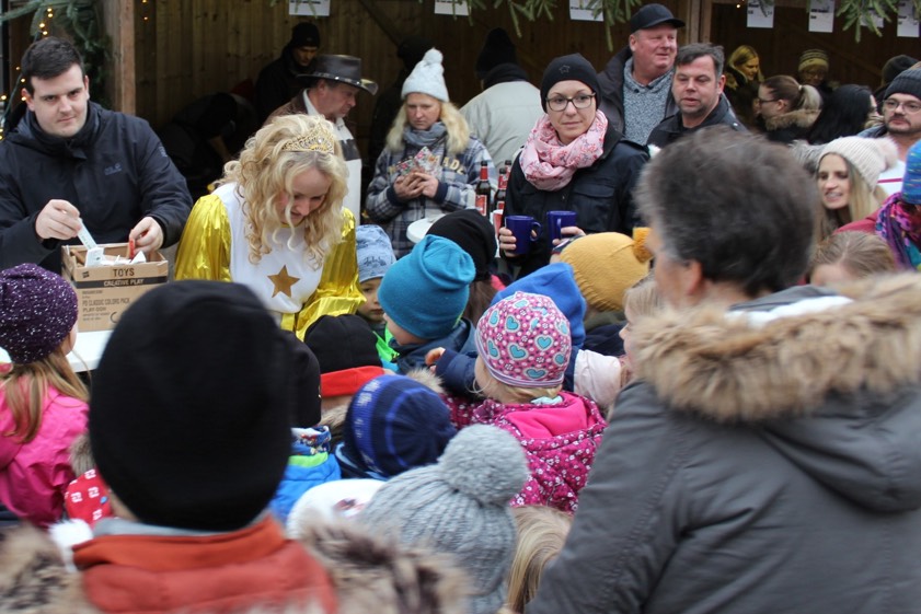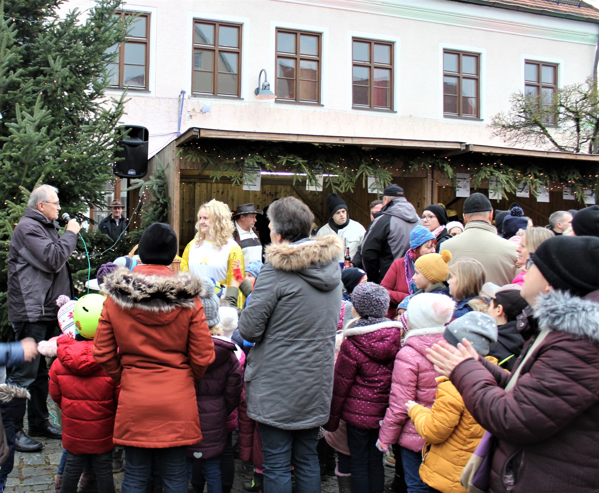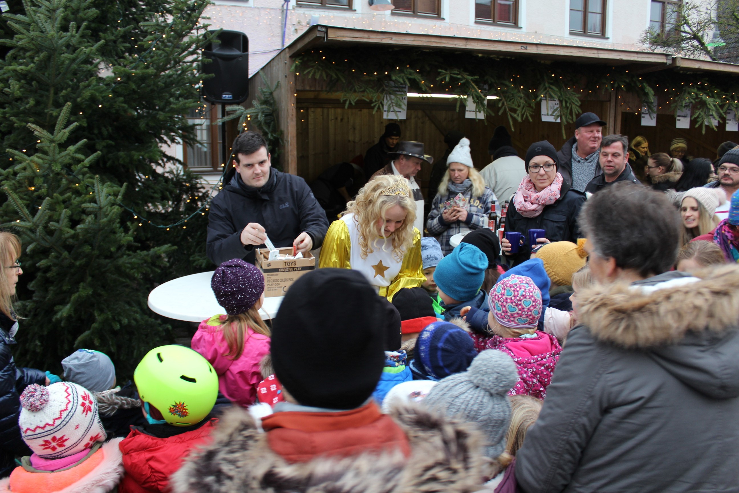 Beim Verteilen der Geschenke wurde das Christkind Julia regelrecht umlagert, musste außerdem viele Fragen beantworten und war freilich ein gefragtes Fotomotiv. Die beim zweiten musikalischen Teil der Marktkapelle einsetzende Dämmerung, die spezielle farbliche LED-Beleuchtung und die allseits bekannten Weihnachtsklänge stimmten dann weiter auf das Christfest ein. "So war es nicht verwunderlich, dass viele Besucher auch danach noch weiter an den Ständen verweilten, um dieses besondere Ambiente noch länger genießen zu können", so ein Gemeinde-Sprecher.