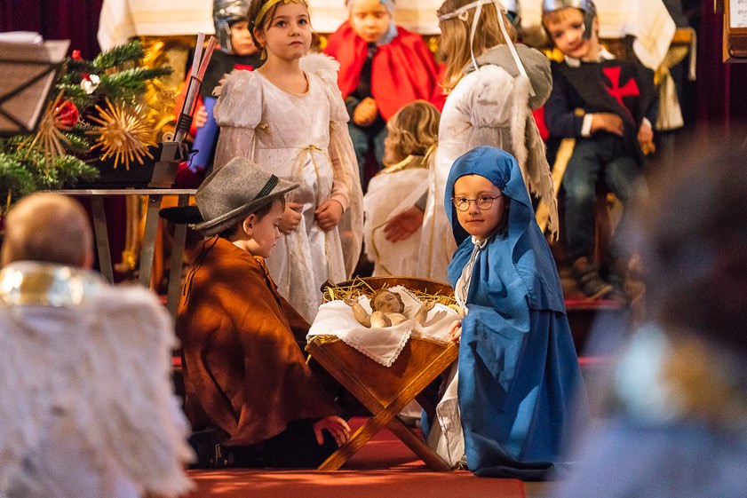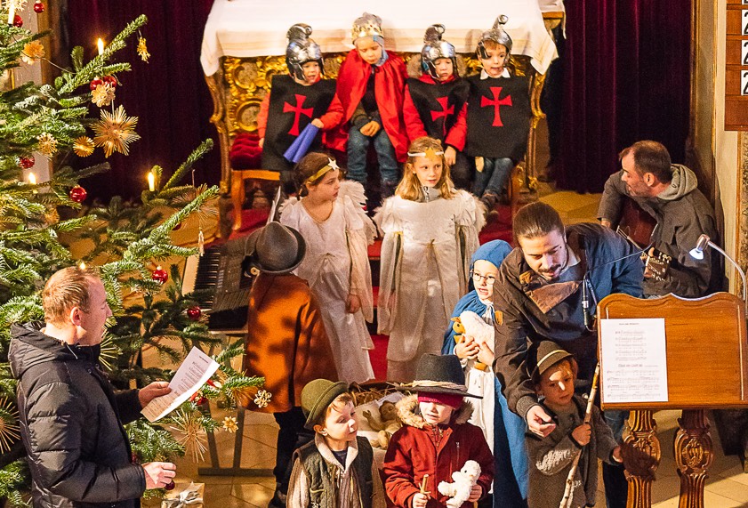 (ty) Die ganz kleinen Walkersbacher waren dieses Jahr an Heiligabend am Zug. Sie präsentierten in der hiesigen Pfarrkirche St. Martin den zahlreich erschienenen Familien-Mitgliedern, Verwandten und Freunden eine etwas andere Version der Herberg-Suche. Bei musikalischer Begleitung mit Gitarre, Posaune, Tuba, Keyboard, Flöte und Orgel verlas Clemens Oberhauser die Geschichte der "Geburtstags-Party von Jesus", zu der die Buben und Mädchen unter der Regie von Andrea und Tobias Moosmayr das Schauspiel zeigten (Fotos).