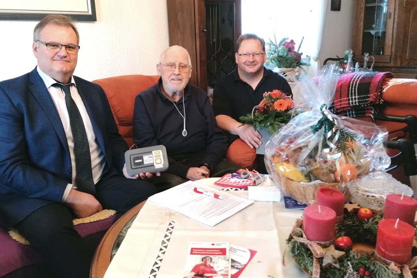 (ty) So genannte Hausnotruf-Geräte können Leben retten. Derartige Systeme geben den Angehörigen Sicherheit und ermöglichen vor allem vielen Senioren, möglichst lange ein selbstbestimmtes Leben in ihrer gewohnten Umgebung führen zu können. Mit Manfred Dreher begrüßte der BRK-Kreisverband Pfaffenhofen kürzlich seinen 600. Hausnotruf-Teilnehmer. Wenige Tage vor Weihnachten war von Hausnotruf-Techniker Hubert Gürtner das Gerät im Wohnzimmer des Jubiläums-Kunden installiert worden.