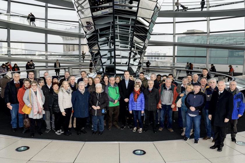 (ty) Eine Gruppe von Bürgern aus dem Bundestags-Wahlkreis von Johannes Huber (AfD) aus Nandlstadt hat auf Einladung des Abgeordneten an einer mehrtägigen Reise nach Berlin teilgenommen. In der Bundeshauptstadt erwartete die Gäste ein Programm, das politische und touristische Stationen bot. Die 50-köpfige Gruppe (Foto oben) besuchte unter anderem den Plenarsaal des Bundestags und diskutierte mit dem Abgeordneten. Eingeladen waren die Bürger unter anderem ins Ministerium für Wirtschaft und Energie.