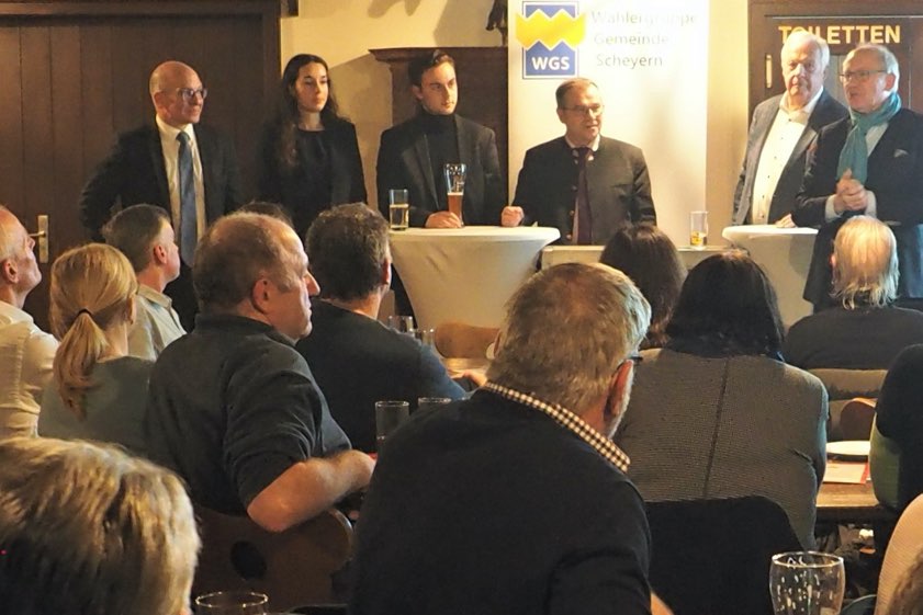 (ty) Die "Wählergruppe Gemeinde Scheyern" (WGS) hat mit dem ersten "WGS-Dialog" ein neues Veranstaltungs-Format eröffnet. Ihr Bürgermeister-Kandidat Wolfgang Inderwies freute sich, unter den Besuchern der Veranstaltung zum Thema "Chancen für Wohnen und Senioren in Scheyern" auch sechs Kandidaten von anderen Kreistags- und Gemeinderats-Listen begrüßen zu können – "ein Zeichen gegenseitigen Interesses und gegenseitiger Wertschätzung". Inderwies betont, dass die WGS-Dialoge der sachlichen Auseinandersetzung mit Themen dienen sollten, die für die Zukunft von Scheyern von Bedeutung seien.
