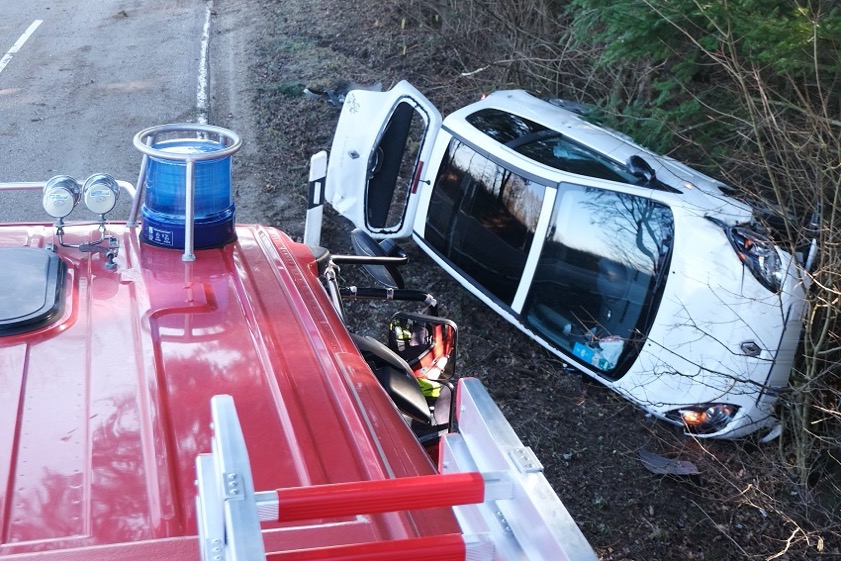 Der Wagen ist letztlich – in Fahrtrichtung betrachtet links – am Waldrand auf der Beifahrerseite zum Liegen gekommen. Der Fahrer, der alleine unterwegs war, konnte sich selbstständig aus dem Wrack befreien, bestätigte die Polizei. Andere Verkehrsteilnehmer waren nach bisher vorliegenden Erkenntnissen nicht in das Unglück verwickelt. Nach Angaben der Feuerwehr ist der Verunglückte mit leichten Verletzungen davongekommen. Der Unfall passierte gegen 10 Uhr.