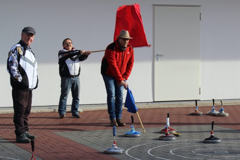 Wie es sich für ein ordentliches Derby – "Rot gegen Blau" – gehört, war der Wettbewerb äußerst umkämpft und das Ergebnis sehr knapp. Erst der letzte Stock brachte die Entscheidung zum 2:1-Erfolg für das rote Team. So umkämpft die Begegnung war, so gesellig fiel das gemeinsame Haxn-Essen der beiden Mannschaften im Anschluss aus.