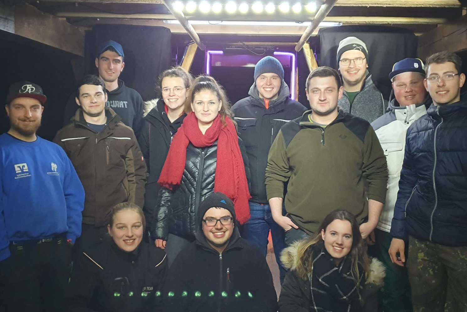 Vorne, von rechts: Johanna Frank, Attila Hum, Karin Reim. Mitte, von rechts: Bernhard Schwarz, Michael Gaßlmaier, Lena Gast, Florian Frank, DJ Simon Holzmann. Hinten, von rechts: Lukas Kollmannsberger, Ludwig Eisenmann, Thomas Meyer, Nina Eisenmann und Stephan Gast.