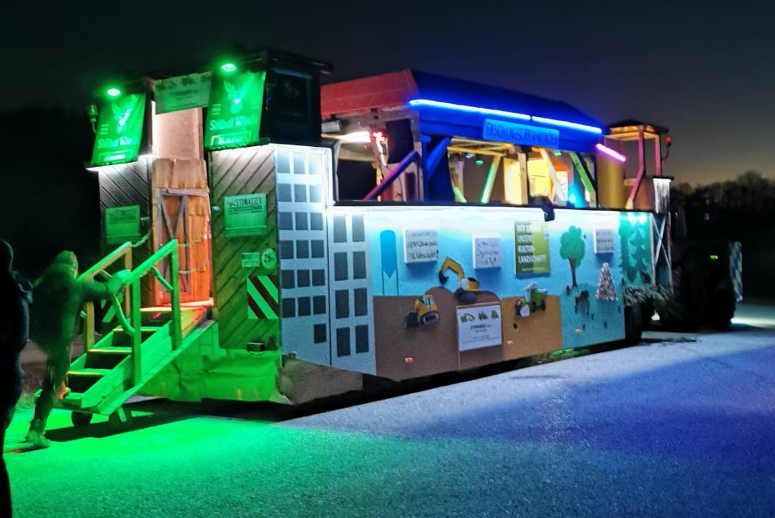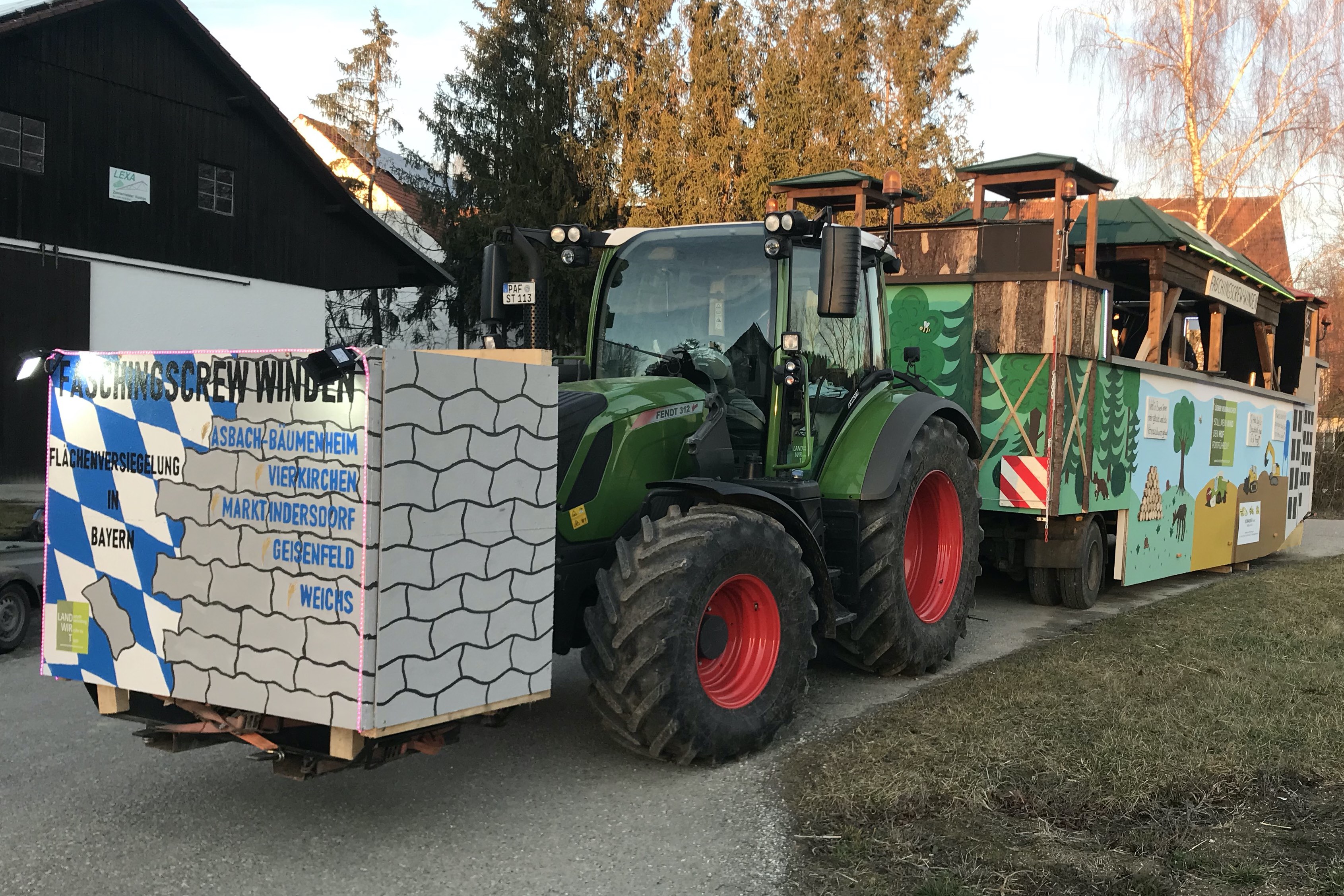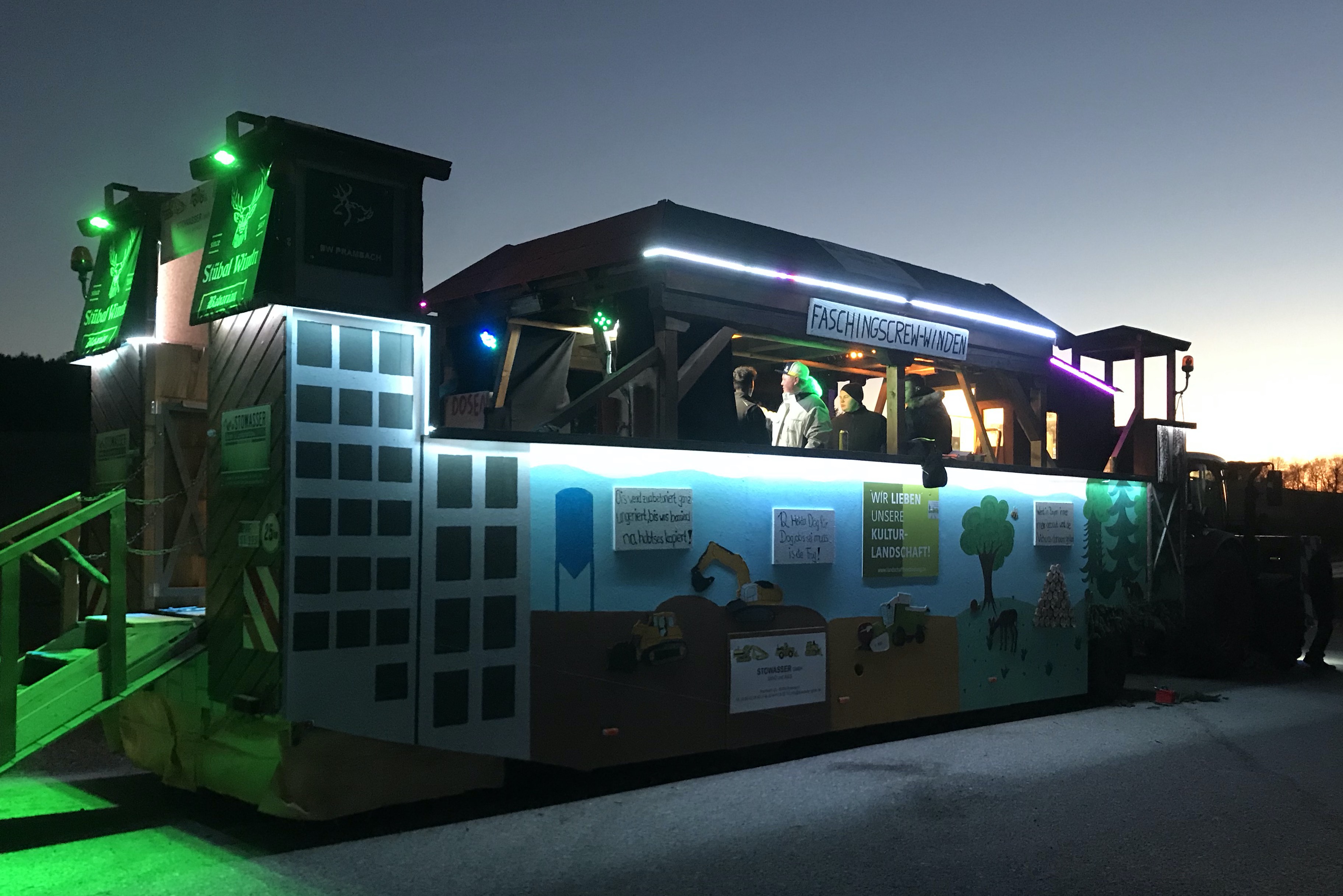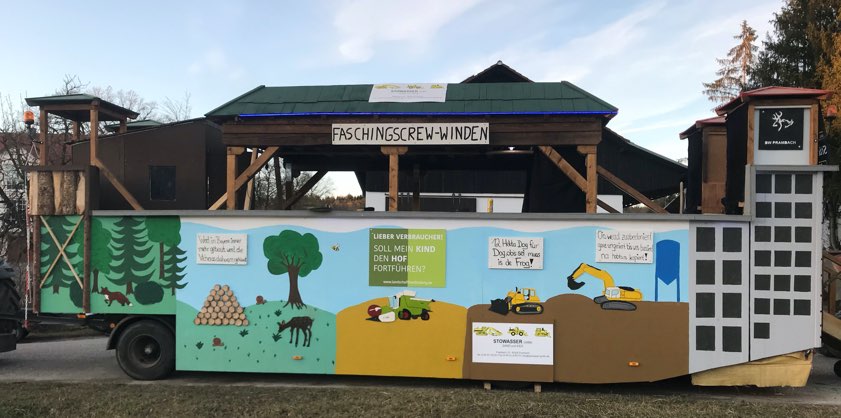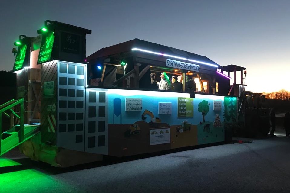 Das aktuelle Motto habe man schon voriges Jahr im Mai festgelegt, berichtet Schwarz. Dass es nun im Rahmen der Landwirtschafts-Diskussion aktueller denn je ist, "passt natürlich auch gut". Weil etliche Mitglieder der Clique haupt- oder nebenberuflich in der Land- und Forstwirtschaft tätig seien, unterstütze man deren Anliegen "soweit wir können". Rund 20 Leute im Alter zwischen 18 und 26 Jahren arbeiteten in den Hoch-Zeiten an dem Faschings-Wagen. Sie kommen aus verschiedenen Branchen, sind zum Beispiel auch Roboter-Progammierer, Chemie-Laboranten oder Kfz-Mechatroniker. "Ein bunter Haufen durch und durch", sagt Schwarz.