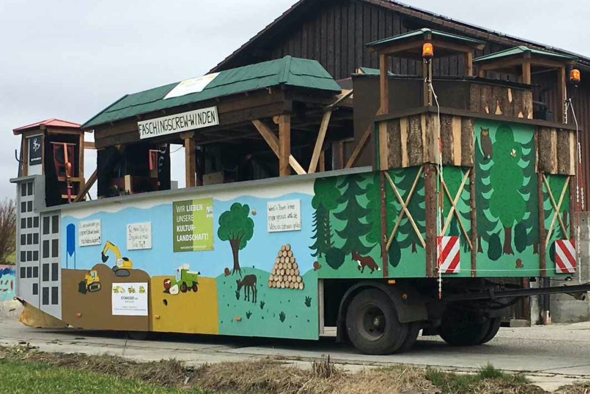 Früher seien sie auf den Mottowagen anderer Faschings-Gesellschaften mitgefahren. Dann, im Jahr 2017, reifte der Entschluss, doch einen eigenen Wagen zu kaufen. Jedes Jahr wird seither ab November daran gearbeitet. "Meistens legen wir am Wochenende oder nach der Arbeit am Abend Hand an", erzählt Schwarz. Etliche Frauen kümmerten sich immer mit Hingabe um die künstlerische Gestaltung beziehungsweise Bemalung des drei Meter breiten, knapp über vier Meter hohen und samt Zugmaschine insgesamt etwa 19 Meter langen Gespanns.