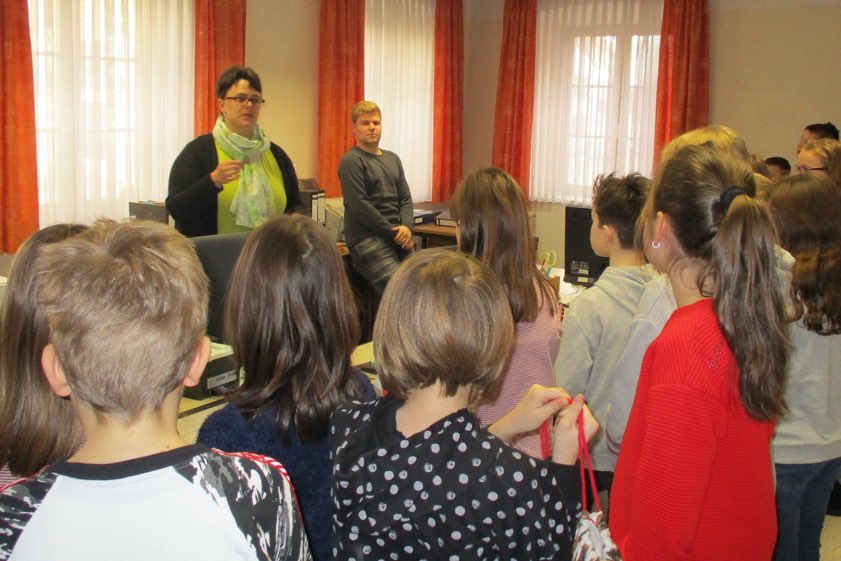 Wie man einen Personalausweis oder Reisepass beantragt und wie diese aussehen, wurde im Bürgerbüro gezeigt. Auch das Fundbüro ist hier angesiedelt. Von Schlüsseln über Geldbeträge bis hin zu Fundtieren wurde im Rathaus schon so ziemlich alles abgegeben. Als nächstes ging es in den ersten Stock zum Bauamt. Hier wurden den Kindern die Aufgaben im Hoch- und Tiefbau erklärt.