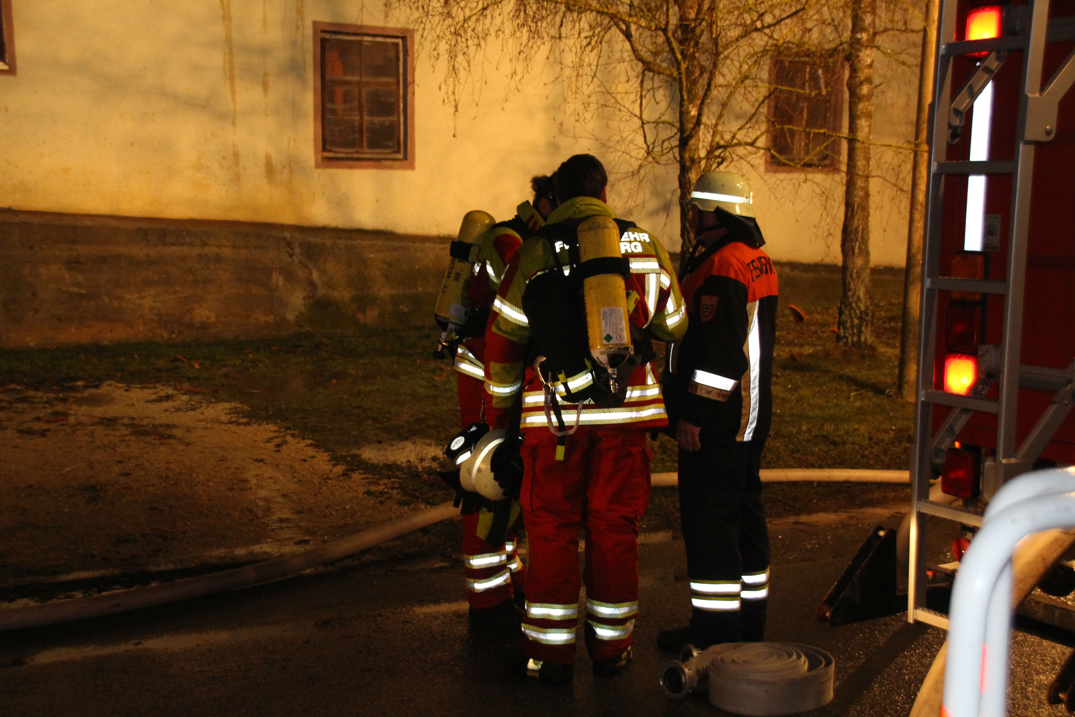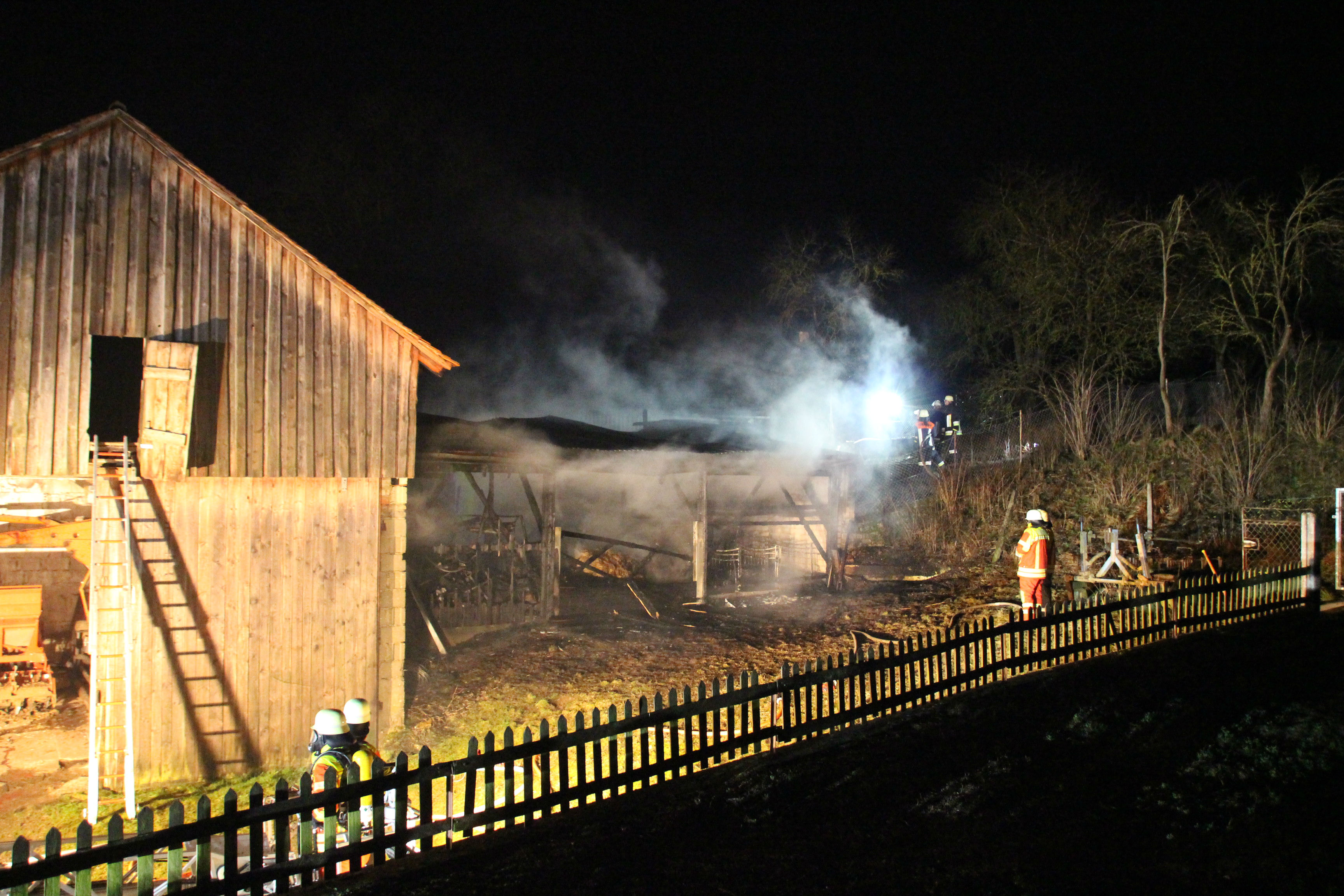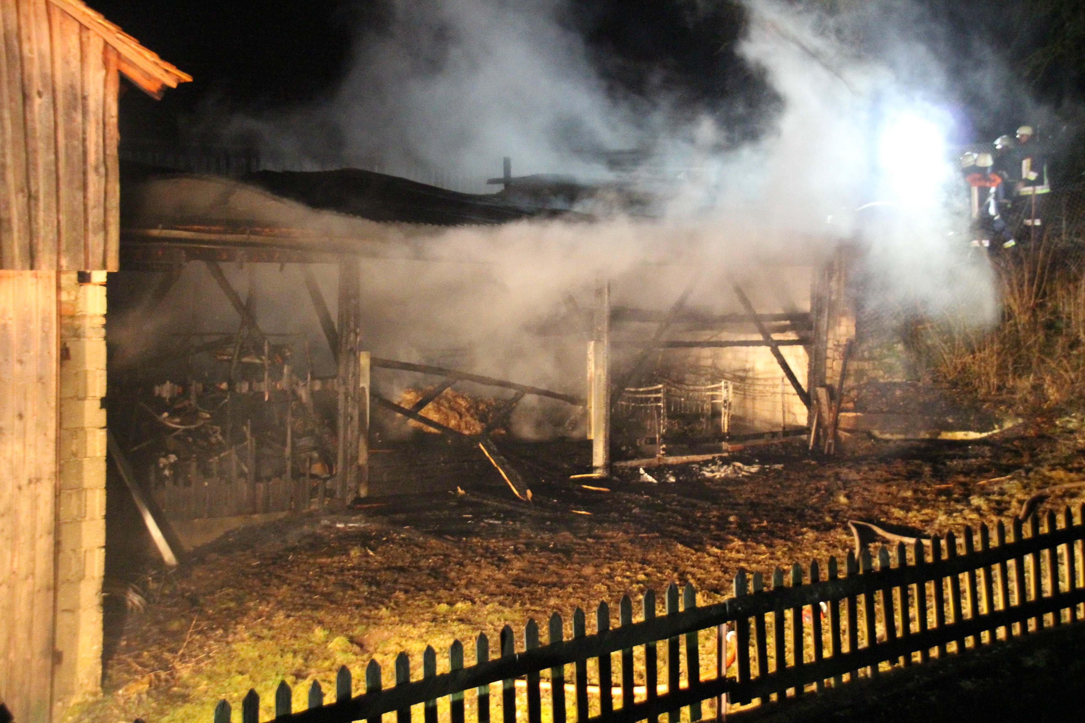 Um 19.39 Uhr wurde die Einsatz-Zentrale des Polizeipräsidiums der Oberpfalz von der integrierten Rettungsleitstelle der Feuerwehr und des Rettungsdienstes über den Brand auf dem landwirtschaftlichen Anwesen in Finsterweiling informiert. Die örtlich zuständige Feuerwehr von Oberweiling sowie weitere umliegende Feuerwehren waren mit einem Großaufgebot an Einsatzkräften vor Ort und bekämpften den Vollbrand an zwei landwirtschaftlichen Nebengebäuden sowie einem Nebengebäude des Hauptstalls.