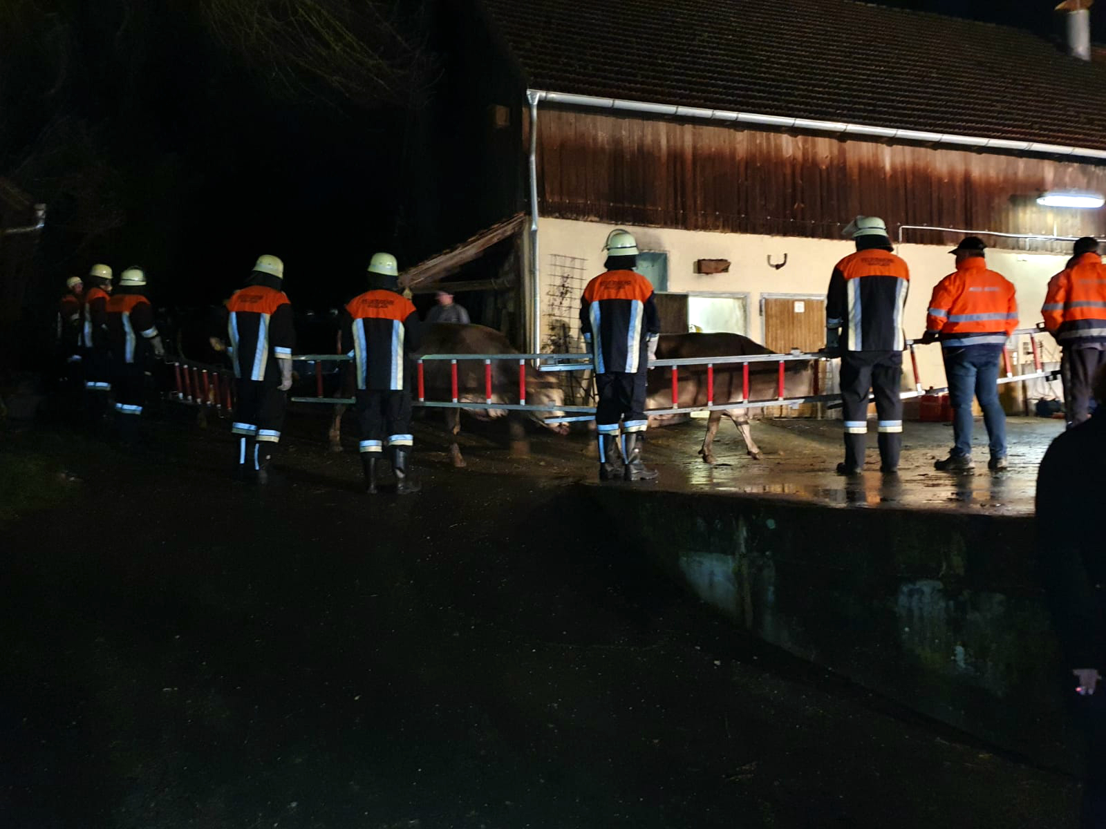 Nach Angaben der Polizei konnten von den Einsatzkräften 30 erwachsene Kühe aus dem verrauchten Hauptstall sowie sechs Kälber aus einem der Nebengebäude gerettet werden. "Leider kam für neun Kälber jede Rettung zu spät. Sie verendeten infolge des Brandgeschehens", erklärte heute ein Polizei-Sprecher. Ein weiteres Übergreifen der Flammen auf den Hauptstall sei verhindert worden. Das Wohnhaus sei glücklicherweise nicht in Mitleidenschaft gezogen worden und unbeschädigt geblieben.