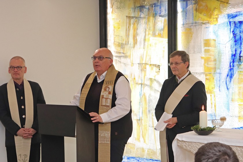 In Anwesenheit von Nikolaus Hipp, Pfaffenhofens Bürgermeister Thomas Herker, Vertretern der Gustav-van-Treeck Werkstätten, des Architekten, Bewohnern des Seniorenheims sowie Ehrengästen spendeten der katholische Pfarrer Albert Miorin und sein evangelischer Berufskollege Jürgen Arlt dem Raum ihren Segen.