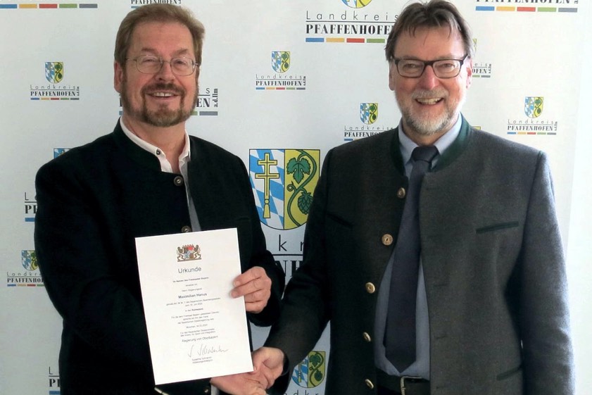 (ty) Seit 3. September 1973 und damit seit knapp 47 Jahren war Max Hanus (Foto oben, links) im öffentlichen Dienst tätig. Jetzt hat ihn der Pfaffenhofener Landrat Martin Wolf in den Ruhestand verabschiedet. "Wir lassen Sie nur ungern gehen. Aber nach so vielen Jahren engagierter Tätigkeit für den Landkreis Pfaffenhofen haben Sie sich Ihren Ruhestand mehr als verdient", sagte Wolf an die Adresse von Hanus.