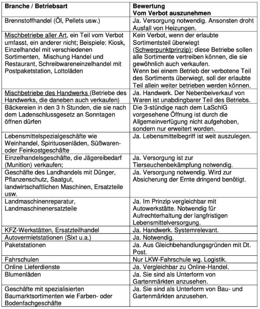 Pfaffenhofener Landratsamt gibt Liste heraus. Hier die Infos zu den jeweiligen Läden beziehungsweise Branchen im Überblick.