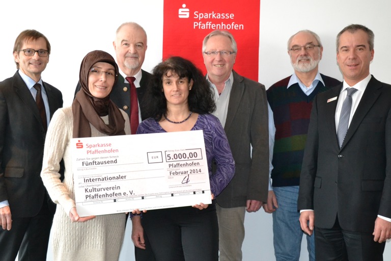 (ty) Einen Scheck über 5000 Euro überreichte der Vorstandsvorsitzende der Sparkasse Pfaffenhofen, Norbert Lienhardt, an den Internationalen Kulturverein Pfaffenhofen. Die Spende wird überwiegend für den Arbeitskreis „Asyl“ verwendet. Asylbewerbern soll damit finanziell geholfen werden, insbesondere bei Behördengängen, Fahrten zum Arzt oder zu Kleiderkammern, aber auch zum Beispiel bei Anschaffungen für Haushalt und Heizmittel.