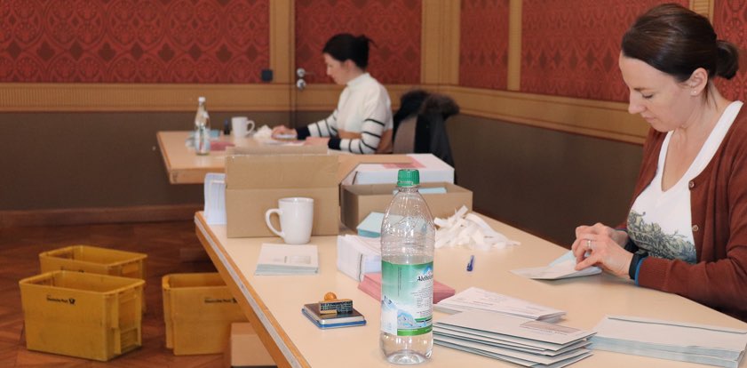 Die Mitarbeiterinnen und Mitarbeiter der Pfaffenhofener Stadtverwaltung hatten in den vergangenen Tagen in einem Kraftakt die Unterlagen vorbereitet und von Hand versandfertig gemacht. "Bereits am Freitagnachmittag konnten so rund zwei Drittel der knapp 20 000 Briefe in die Post gehen", teilte heute ein Sprecher der Stadtverwaltung.