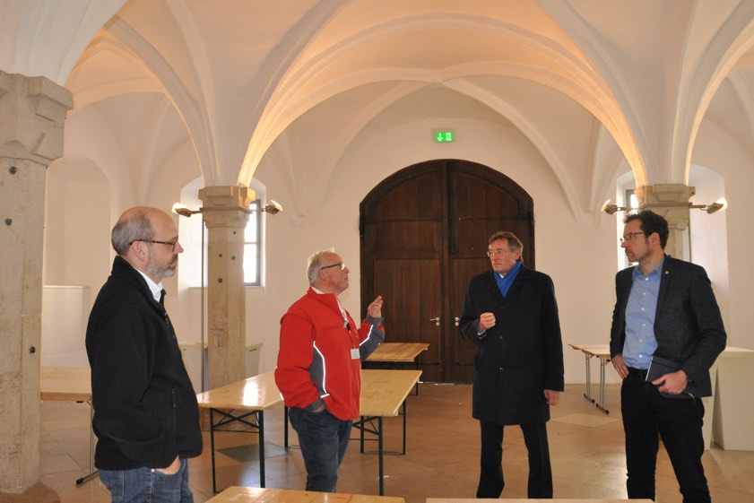 Bei einem Ortstermin im Marstall in Neuburg haben Landrat Peter von der Grün, Oberbürgermeister Bernhard Gmehling sowie BRK-Organisationsleiter Bernhard Pfahler und BRK-Kreisgeschäftsführer Robert Augustin das weitere Vorgehen beim Aufbau der hier geplanten Fieber-Ambulanz festgelegt. Sie wird laut heutiger Mitteilung voraussichtlich am kommenden Montag, 30. März, im Marstall ihren Betrieb aufnehmen.