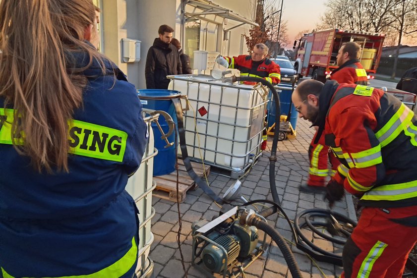 Die Flüssigkeit sei anschließend in verschiedene Gebinde-Größen abgefüllt worden; die dafür verwendeten Fässer habe die Clariant-AG gestellt. "Die Einsatzkräfte liefern das Flächen-Desinfektionsmittel nun ans Klinikum Freising, die Ärzteschaft und die Pflegeheime im Landkreis aus, wo es dringend benötigt wird, um Räumlichkeiten zu sterilisieren", teilte das Landratsamt mit. Abschließend heißt es: "Bei weiterem Bedarf können die Einsatzkräfte das Mittel erneut selbst herstellen."
