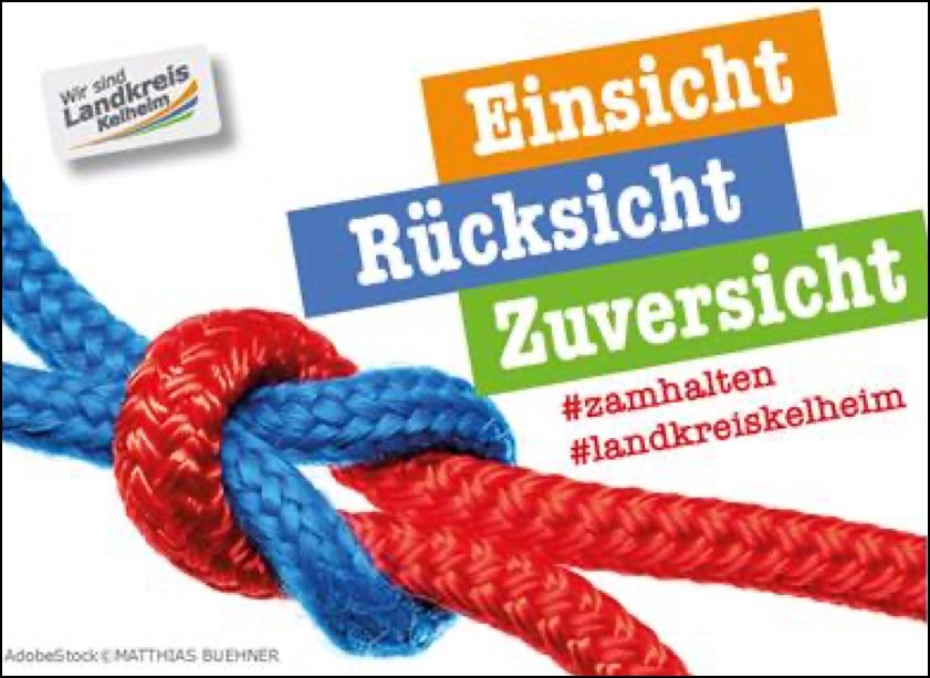 Die Aufkleber "Einsicht, Rücksicht, Zuversicht" (siehe unten) sind ab sofort in allen Gemeinden und am Landratsamt Kelheim erhältlich. "Sie eignen sich zur Auslage im Einzelhandel und in den örtlichen Nahversorgern", so das Landratsamt. Auf Wunsch könnten die Aufkleber auch von der Behörde zugeschickt werden.