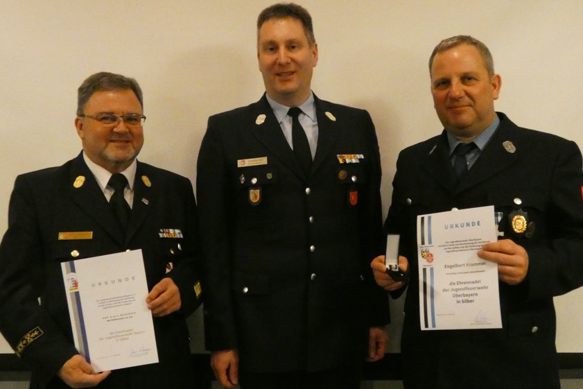 "Auch wenn jeder weiß, wie wichtig die Jugendarbeit ist, sieht man sich über die gezeigte Wertschätzung in Form einer Ehrung noch mehr in seinem Engagement bestärkt", so Sirl. Mit der Ehrennadel der Jugendfeuerwehr Oberbayern in Silber wurden Engelbert Krammer, Jugendwart der Feuerwehr Geisenhausen, sowie Manfred Gaßner, Jugendwart der Feuerwehr Tegernbach bedacht. Eine besondere Ehre kam Kreisbrandrat Armin Wiesbeck zu. Ihm verlieht Sirl die Ehrennadel der Jugendfeuerwehr Bayern in Silber.