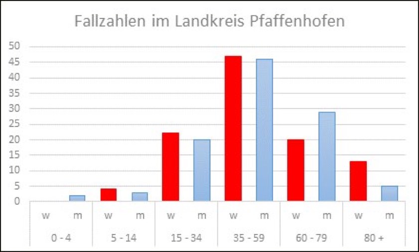 (ty) Ein 77-Jähriger aus dem Kreis Pfaffenhofen, bei dem eine Corona-Infektion bestätigt worden war, ist im Ingolstädter Klinikum gestorben. Das wurde heute aus dem Landratsamt gemeldet. Damit erhöht sich die Zahl der Todesfälle im Landkreis in Zusammenhang mit der Pandemie auf vier. Der 77-Jährige habe an Vorerkrankungen gelitten. Außerdem erhöhte sich die Zahl der positiv auf das neuartige Virus getesteten Menschen aus dem Kreis Pfaffenhofen seit gestern um elf auf nun 211. Erstmals gab das Landratsamt jetzt Details zur Altersverteilung und zu den Wohnort-Gemeinden der Infizierten bekannt. Wir fassen die Situation zusammen.