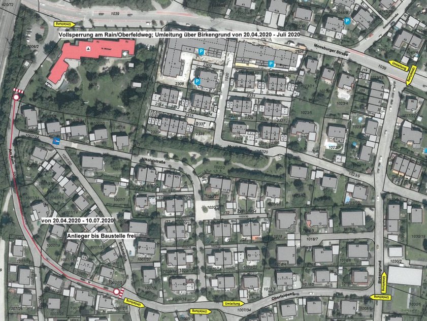 Los geht es nach Angaben des Kommunal-Unternehmens am Montag mit dem ersten Bauabschnitt. Der reicht von "Am Rain" bis zur Kreuzung von "Schönblick" und Oberfeldweg. Dieser Bereich werde bis voraussichtlich Juli dieses Jahres für den Verkehr gesperrt sein. Die Umleitung führe über den Birkengrund. "Die Anwohner sind informiert und können, je nach Baufortschritt, bis zu ihrem Grundstück fahren", erklärte Anke Reuter-Zehelein, die Sprecherin der Stadtwerke. Der Kindergarten "St. Michael" sei von der Moosburger Straße her erreichbar. Der Parkplatz des Kindergartens (Ecke Moosburger Straße, Am Rain) werde jedoch für die Dauer der Baumaßnahmen gesperrt und könne somit nicht genutzt werden.