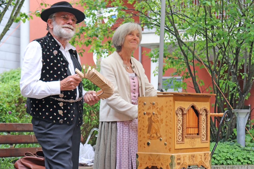 (ty) Ein Drehorgel-Konzert unter freiem Himmel hat den Bewohnern der Senioren-Wohnanlage "St. Josef" am Hofberg in Pfaffenhofen eine unterhaltsame Ablenkung in Zeiten der Corona-Beschränkungen beschert. Max Heckmeier alias Maximillian Brummwurz und dessen Frau Rosa (Foto oben) spielten auf ihrer Drehorgel bekannte Melodien –vom bayrischen Defiliermarsch und "Unser oide Kath'" über einen Zwiefachen und bis hin zu beliebten Liedern wie "La Paloma". Dazu erzählte Heckmeier Wissenswertes und kleine Geschichten zu den Liedern und Melodien.