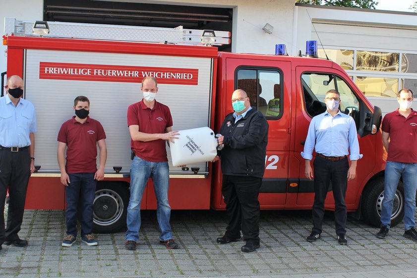 (ty) Die Freiwillige Feuerwehr aus dem Hohenwarter Ortsteil Weichenried ist jetzt um eine Löschhilfe reicher. Bürgermeister Jürgen Haindl (FW) und der Vorstand der Wehr nahmen aus den Händen von Kreisbrandinspektor Christian Nitschke und Kreisbrandmeister Klaus Reiter einen von der bayerischen Versicherungskammer gesponserten Schwimmsauger für künftige Einsätze entgegen (Foto oben). "Ohne Löschwasser kann die beste Feuerwehr nicht löschen", so das Motto dieser Aktion.