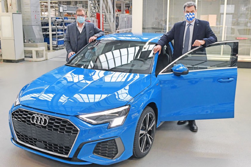 Seit heute fertigt Audi nach eigenen Angaben auf einer Linie den A3 und Q2 wieder im Drei-Schicht-Betrieb, nachdem die Produktion – wie berichtet – zwei Wochen zuvor nach einer corona-bedingten Produktionsruhe zunächst in einer Schicht gestartet war. Ab Ende Mai plant das Unternehmen laut heutiger Mitteilung, auch die Produktion des A4 und A5 schrittweise wiederaufzunehmen. Beim Hochfahren der Produktion stehe dabei stets der Gesundheits-Schutz der Mitarbeiter im Fokus, versichert Audi. Beim heutigen Rundgang habe Ministerpräsident Söder "einen Überblick über die umfangreichen Maßnahmen" erhalten, die ergriffen worden waren, "um die Abstands- und Hygieneregeln einzuhalten und Kontakte zu vermeiden".