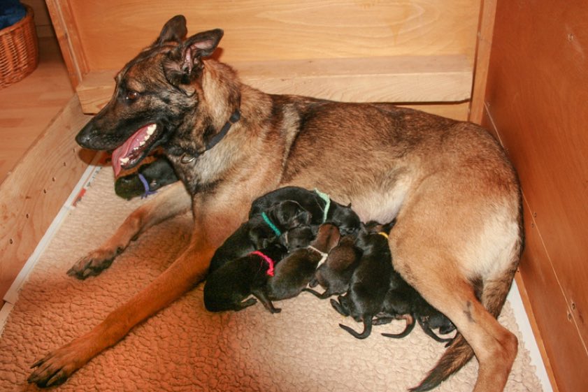 Malinois-Hündin Lea brachte elf Welpen zur Welt. Die Nachnamen der kleinen Racker beginnen allesamt mit dem Buchstaben M.