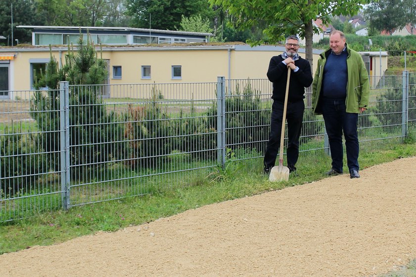 (ty) Ein dringender Wunsch der Bewohner im neuen Baugebiet "Am Kerschberg II" in Hohenwart an den neuen Bürgermeister Jürgen Haindl (Freie Wähler) war ein geeigneter Fußgängerweg zum Kindergarten. "Die Erhöhung der Verkehrs-Sicherheit ist eine wichtige Aufgabe einer Kommune und genießt oberste Priorität", wurde dazu heute aus dem Rathaus mitgeteilt. "Hier war schnelles Handeln erforderlich." Am heutigen Freitag konnten sich Gemeinde-Oberhaupt Haindl (Foto oben, links) und Eberhard Ade vom technischen Bauamt bei einem Ortstermin bereits von der Fertigstellung des Fußgängerwegs überzeugen.