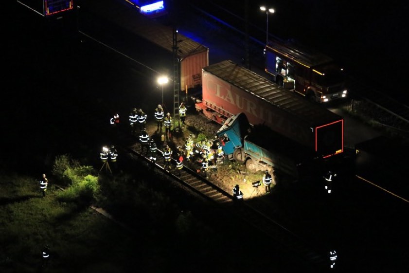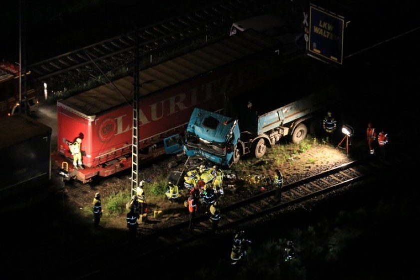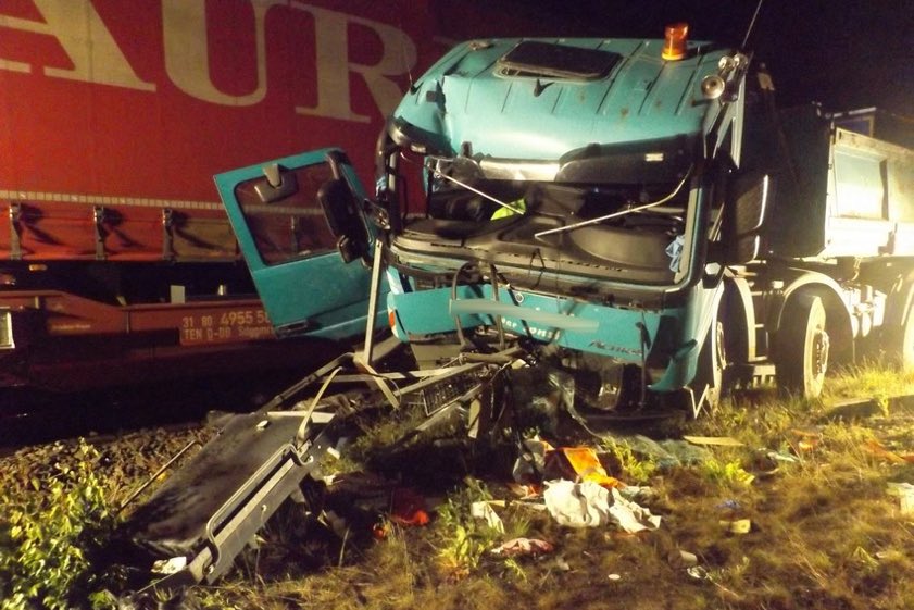 Dabei dürfte der Lkw-Lenker laut Bundespolizei einen herannahenden Güterzug übersehen haben. Sein hinter ihm fahrender Kollege habe ihn per Funk noch warnen wollen – aber es war schon zu spät. Der mit 40 bis 60 Kilometer pro Stunde fahrende Güterzug erfasste nach Angaben der Polizei den Lastwagen und zog ihn rund 30 Meter mit, bevor er nach einer Schnellbremsung zum Stehen kam. "Der 59-jährige, allein im Fahrzeug befindliche Fahrzeuglenker wurde aus dem Führerstand geschleudert." Er habe schwere Verletzungen erlitten und sei mit einem Rettungs-Hubschrauber in ein Münchner Klinikum gebracht worden.