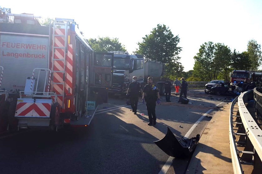 Das Unglück ereignete sich gegen 17.30 Uhr. Soweit bislang nach Angaben des Polizeipräsidiums Oberbayern-Nord ermittelt werden konnte, war der 19-jährige Fahrer eines mit vier Personen besetzten BMW von der B300 abgefahren auf die B13 in Richtung Ingolstadt. Noch auf der Brücke der Abfahrt geriet das Fahrzeug aus bislang nicht geklärter Ursache in der langgezogenen Rechtskurve auf die Gegenfahrbahn, so ein Polizei-Sprecher. Dort sei es, offenbar mit hoher Geschwindigkeit, zum Frontal-Zusammenstoß mit einem entgegenkommenden Lkw – ein Asphalt-Transporter – gekommen.