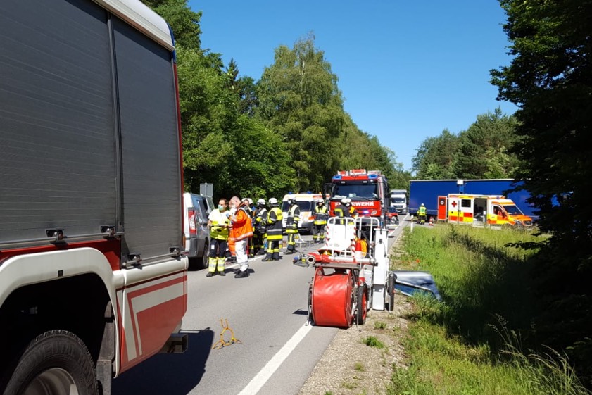 Die B13 musste kurzzeitig komplett gesperrt werden. Die Straßenmeisterei rückte ebenfalls an und stellte die bauliche Verkehrs-Sicherheit wieder her. "Die Ermittlungen hinsichtlich der Unfallursache dauern an", erklärte ein Polizei-Sprecher.