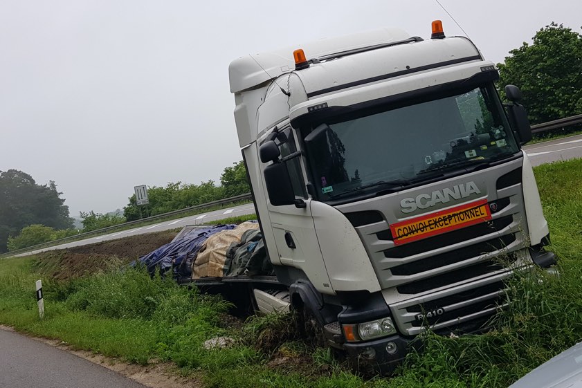 "Um das Fahrzeug aus der misslichen Situation zu befreien, musste schweres Bergegerät eingesetzt werden", fasste die Polizei zusammen. Die Ladung des Aufliegers, rund 23 Tonnen Stahlstangen, habe zunächst umgeladen werden müssen. Schließlich sei der Sattelzug von einem Kran zurück auf die Fahrbahn gehievt worden. Zu Verkehrs-Beeinträchtigungen auf der B300 sei es nicht gekommen, da die Bergung über die parallel verlaufende Verbindungsstraße erfolgen konnte. Die Arbeiten zogen sich bis in den Nachmittag.