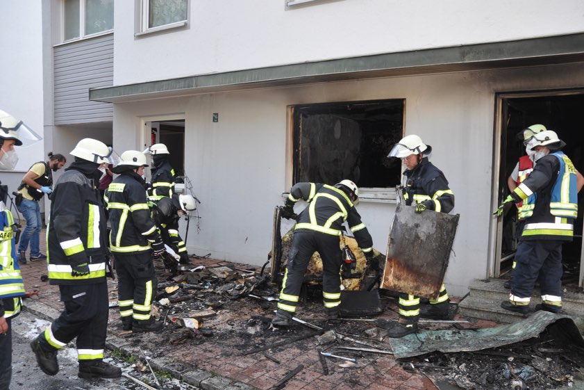 Der durch das Feuer entstandene Rauch habe sich schnell in dem gesamten Gebäude ausgebreitet und sei dabei auch in das Obergeschoss gedrungen. Im ersten Stock habe sich zu diesem Zeitpunkt ein älteres Ehepaar in seiner Wohnung befunden. Die beiden konnten nach Angaben der Polizei von den Feuerwehrleuten noch rechtzeitig aus dem Gebäude gebracht werden. Die gerettete Frau habe eine leichte Rauchvergiftung erlitten; sie sei vom Rettungsdienst ins örtliche Krankenhaus gebracht worden.