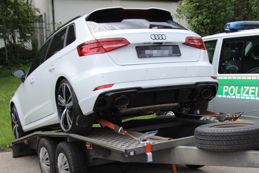 Den richtigen Riecher hatten, so wurde jetzt aus dem in Ingolstadt ansässigen Polizeipräsidium Oberbayern-Nord erläutert, zwei Beamte von der örtlichen Polizeiinspektion bewiesen, als sie in der besagten Nacht zum 20. Juni gegen 1.15 Uhr im Stadtgebiet von Pfaffenhofen einen Mercedes-Vito mit Anhänger einer allgemeinen Verkehrs-Kontrolle unterziehen wollten. Nachdem der Fahrer des Gespanns, dessen Anhänger den Angaben zufolge mit einem neuwertigen Audi-RS3 beladen war (Foto oben), angehalten hatte, flüchtete er zu Fuß vor den Gesetzeshütern.