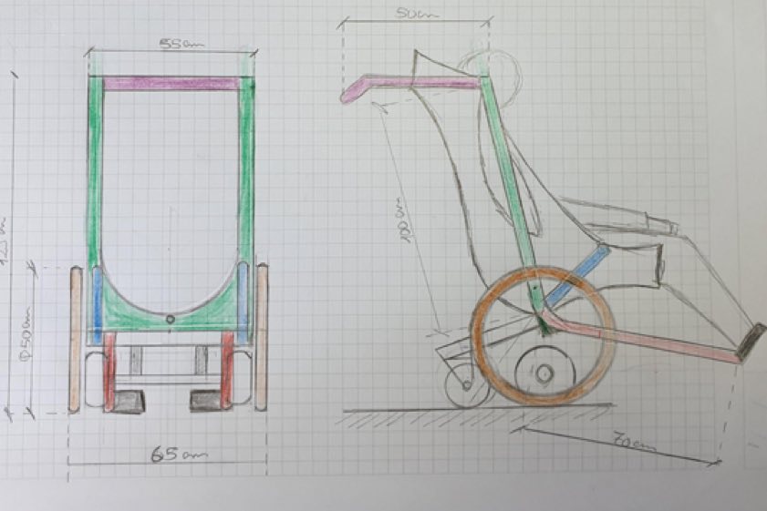 Ziel war es laut THI-Angaben, Transportmittel zu entwerfen, die in Situationen eingesetzt werden können, für die Rollstühle ungeeignet sind. Neben der medizinisch korrekten Positionierung der Person im Transportmittel sei es dabei vor allem darauf angekommen, dass sich der "Transporter" einfach herstellen, reparieren und vielseitig verwenden lasse. Hierzu müsse er sich auch auf schwierigem Untergrund kontrolliert bewegen und platzsparend zusammenklappen lassen, damit die Person beispielsweise von einem Sammeltaxi mitgenommen werden könne.