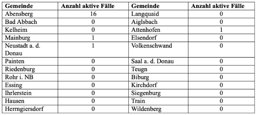 Das Landratsamt weist erneut darauf hin, "dass es trotz Auftreten von einzelnen aktiven Fällen in den Landkreis-Gemeinden laut Gesundheitsamt aktuell keine bedeutsame Häufung von Fallzahlen im Landkreis Kelheim gibt".