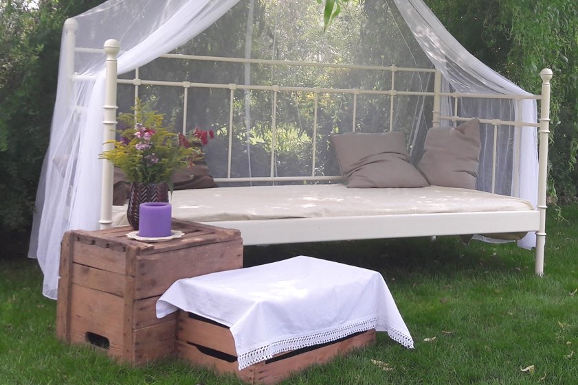 (ty) Weiter geht die Serie von Fotos aus der Region, die uns unsere Leserinnen und Leser nach wie vor übermitteln. Das Motiv, das wir Ihnen diesmal zeigen, hat uns Sieglinde Jochner aus dem Hettenshausener Ortsteil Reisgang übermittelt. "Wie so manch andere Familie werden wir den Sommer bei uns zuhause verbringen und zu diesen besonderen Zeiten auf eine Urlaubsreise verzichten", schreibt sie uns. "Zum Start in die Sommerferien haben wir es uns in unserem Garten besonders gemütlich gemacht. Ich habe das alte Bett meiner mittlerweile erwachsenen Tochter Lara zu neuem Leben erweckt und kurzerhand in den Garten gestellt." Oben ein Ausschnitt, unten sehen Sie das gesamte Foto.