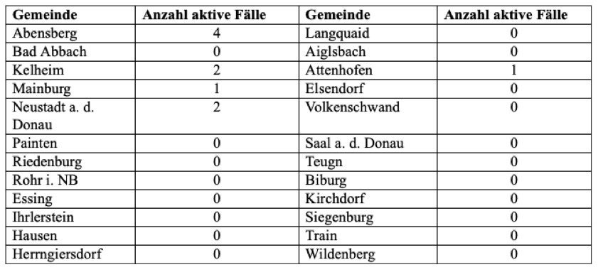 Das Landratsamt wies heute erneut darauf hin, "dass es trotz Auftreten von einzelnen aktiven Fällen in den Landkreis-Gemeinden laut Gesundheitsamt aktuell keine bedeutsame Häufung von Fallzahlen im Landkreis Kelheim gibt".