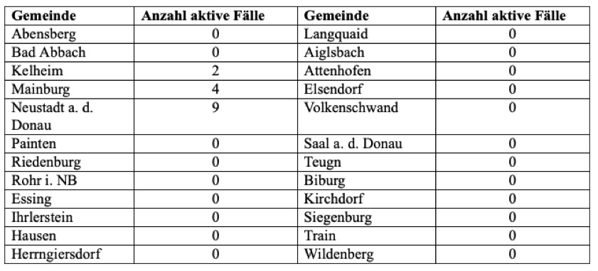 Das Landratsamt wies heute einmal mehr darauf hin, "dass es trotz Auftreten von einzelnen aktiven Fällen in den Landkreis-Gemeinden laut Gesundheitsamt aktuell keine bedeutsame Häufung von Fallzahlen im Landkreis Kelheim gibt".