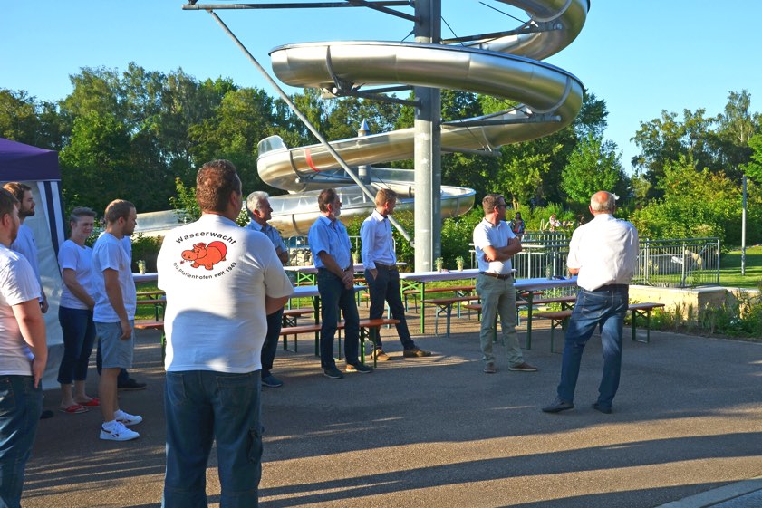 Stefan Eisenmann, Geschäftsführer der Bäder-GmbH und Chef der hiesigen Stadtwerke, sowie die Stadträte Michael Kaindl und Adi Lohwasser in ihren Funktionen als zuständige Referenten, und Freibad-Betriebsleiter Thomas Roth sowie der Vorsitzende der Wasserwacht-Ortsgruppe Pfaffenhofen, Hans Postel, gaben den neuen Platz frei. Auch 14 Helfer, die an der Umgestaltung beteiligt waren, nahmen an der Zusammenkunft zur Eröffnung des Areals teil.