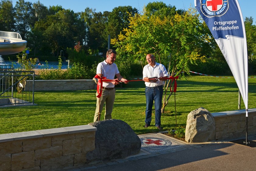 Der Gartenbauer habe zudem ein Mosaik gestaltet, welches das Wasserwacht-Logo zeige. Das Material für den Umbau haben die Bäder-Pfaffenhofen-GmbH und die hiesige Firma Schranz zur Verfügung gestellt. Die Arbeitsleistung habe die Wasserwacht selbst erbracht.