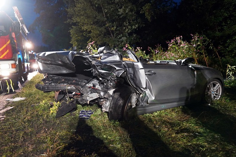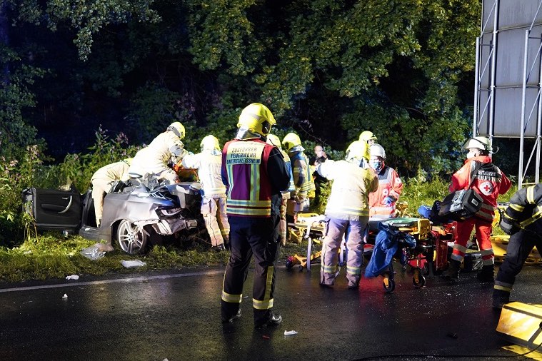 Fahranfänger schleuderte gestern Abend am Maisteiger Berg mit seinem BMW in den Gegenverkehr. Drei Hubschrauber im Einsatz.