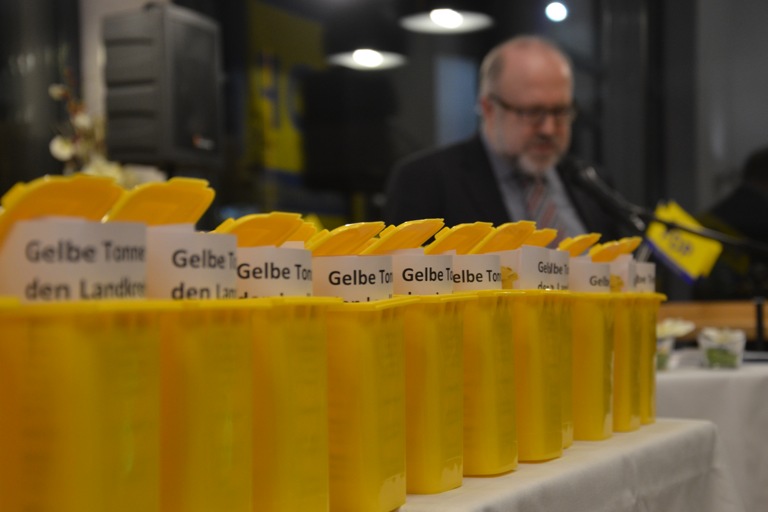 Die FDP um ihren Kreischef Kosef Postel wirbt schon eifrig für die gelbe Tonne.