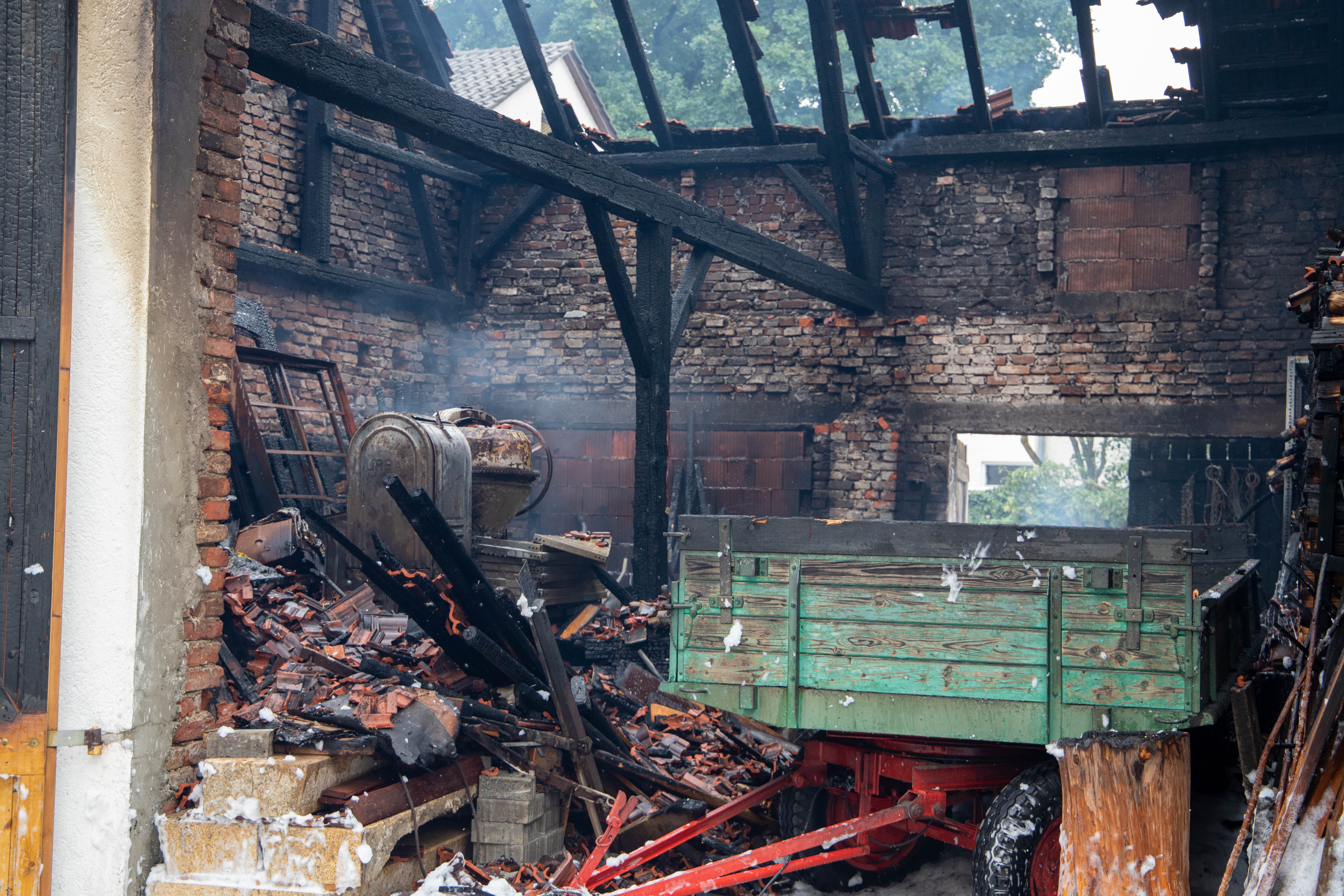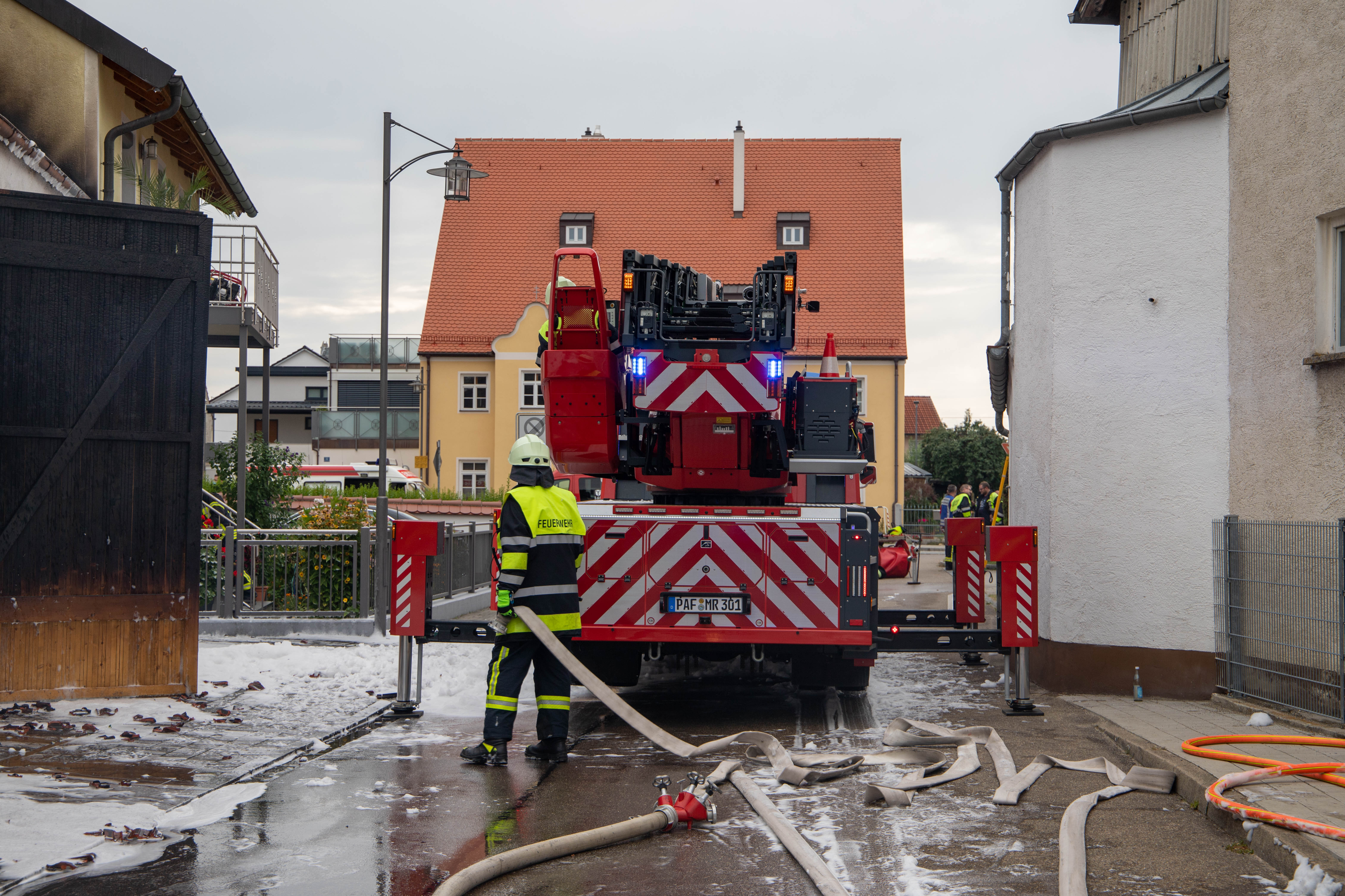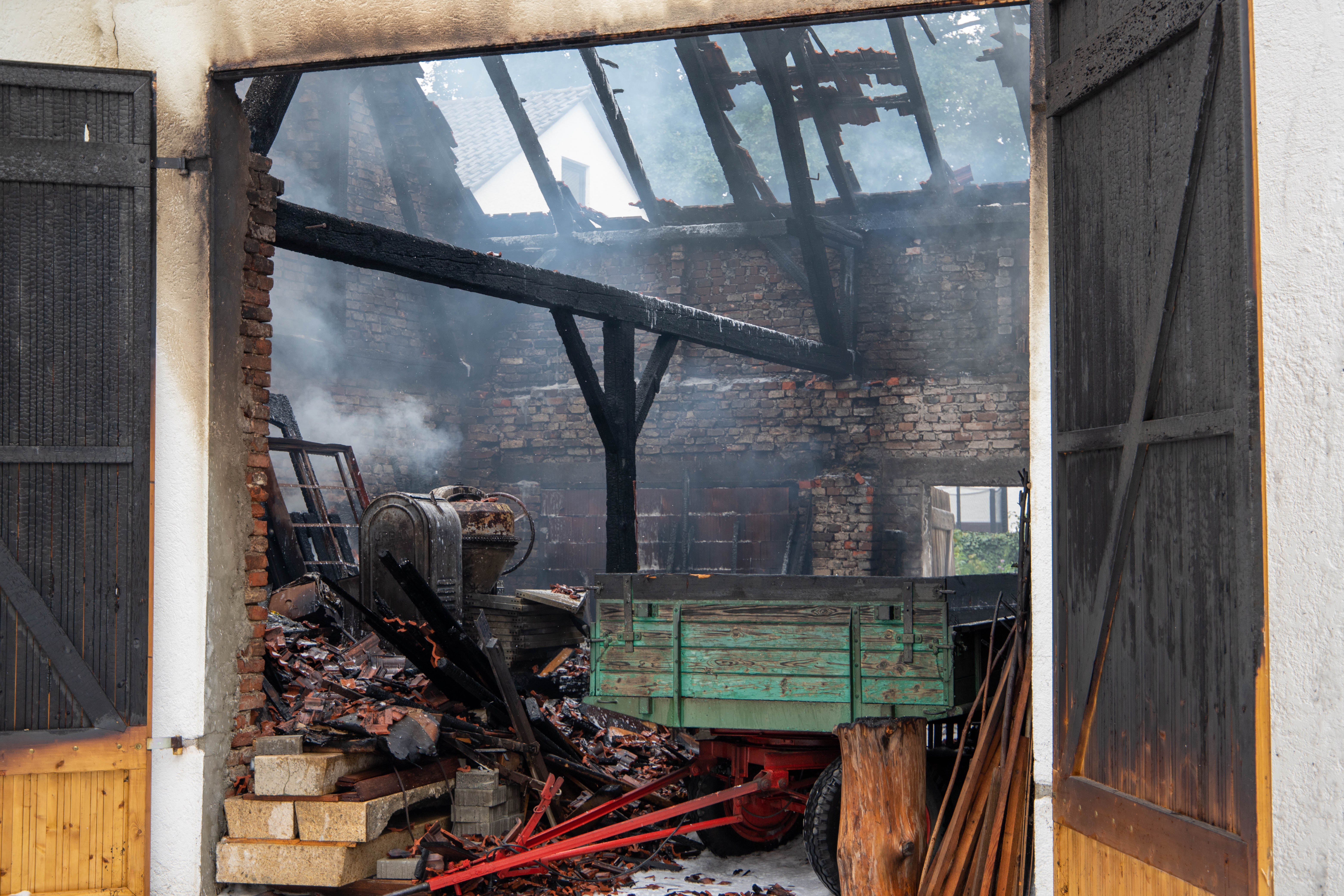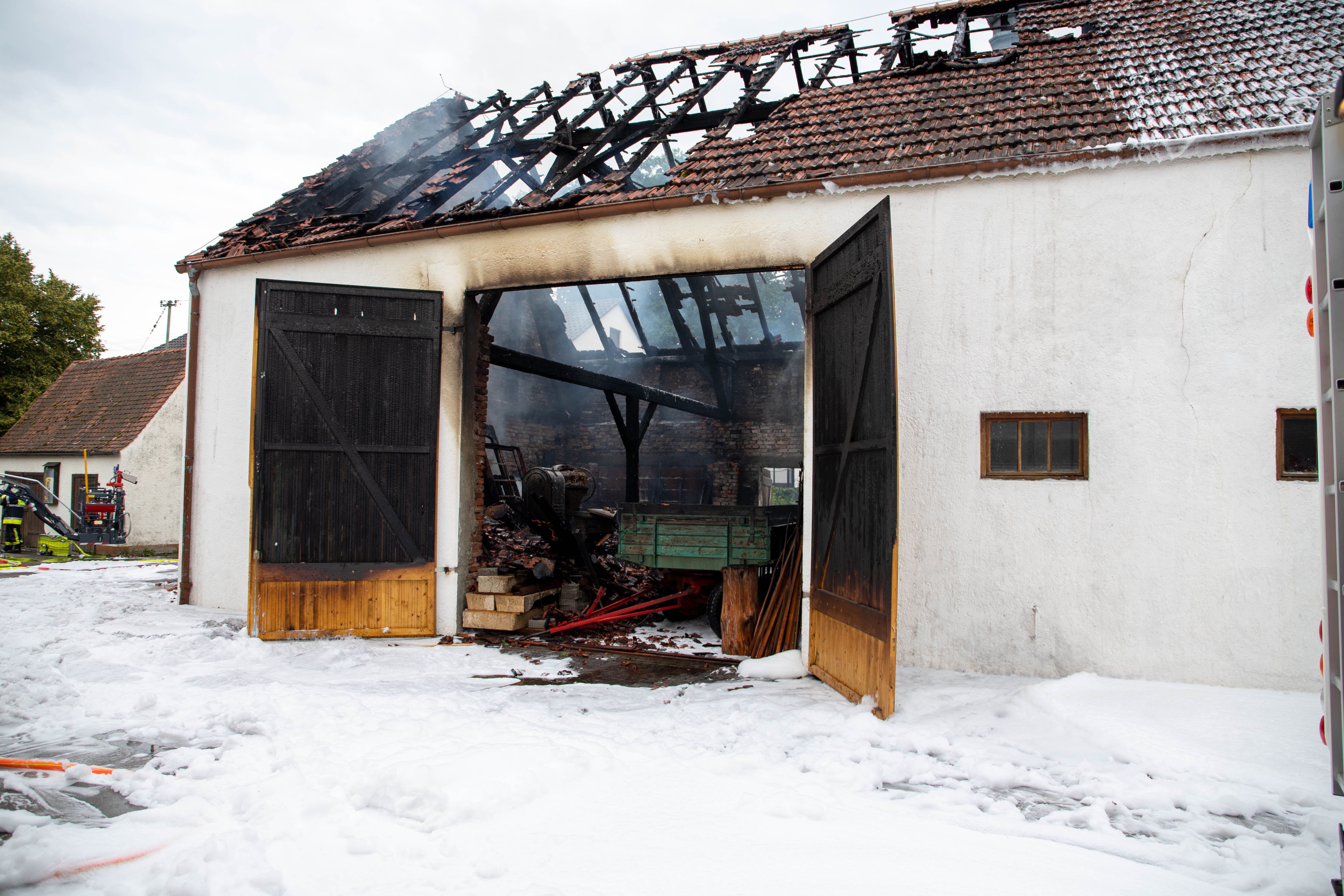 Durch den schnellen Einsatz der Floriansjünger konnte nach Angaben der Polizei zumindest ein Übergreifen der Flammen auf das Wohngebäude verhindert werden. Das in Brand geratene Gebäude sei allerdings nicht mehr zu retten gewesen und abgebrannt. Die Hauptlöscharbeiten dauerten laut Mitteilung des Polizeipräsidiums bis gegen 15.30 Uhr. Die betroffenen Anwohner hatten sich den Angaben zufolge rechtzeitig in Sicherheit bringen können, sodass laut Polizei zum Glück niemand verletzt worden ist. Nach ersten Schätzungen belaufe sich der Sachschaden auf zirka 80 000 Euro.