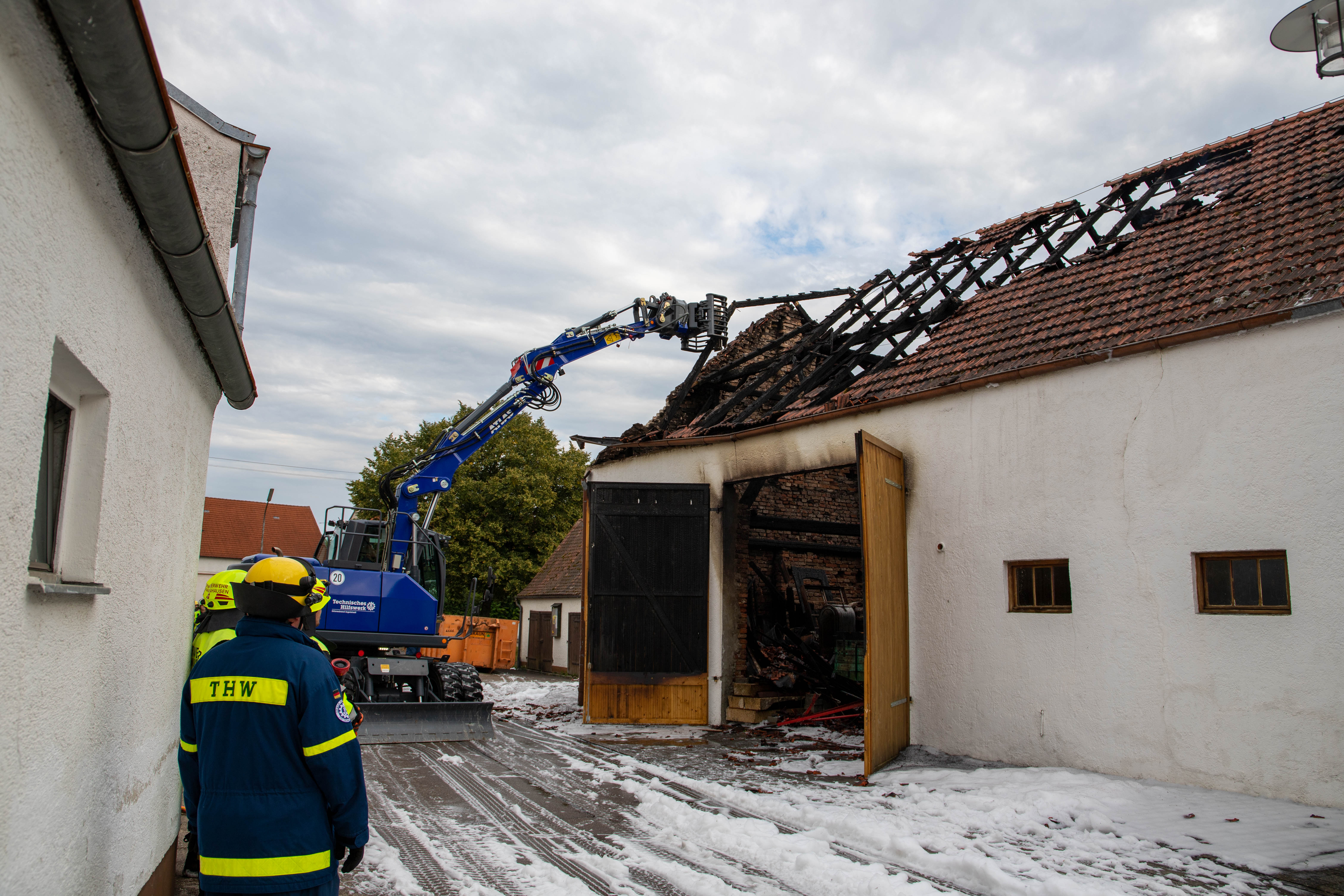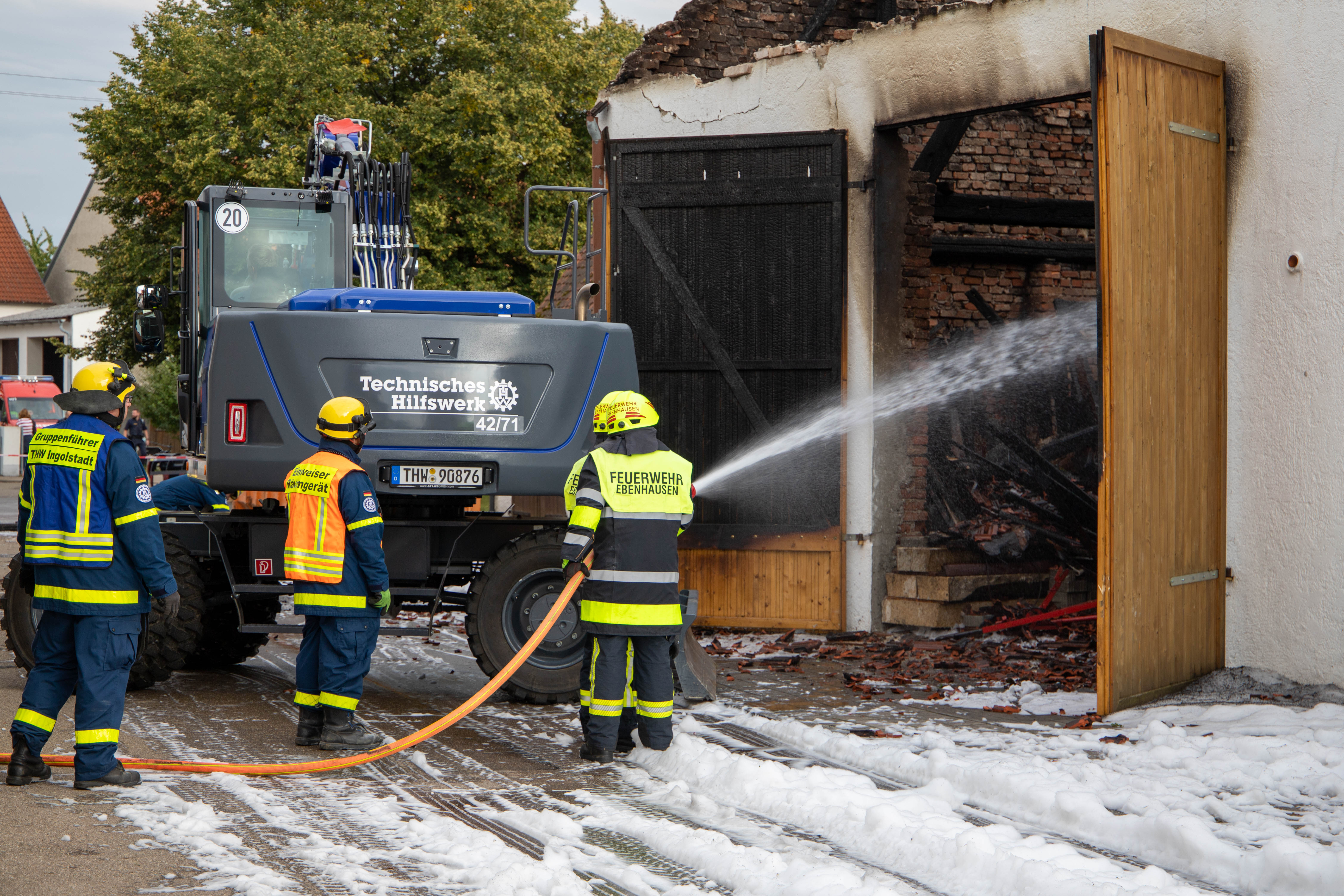 "Die Brandursache ist bisher noch unklar", meldete das Polizeipräsidium am Abend. Die weiteren Ermittlungen werden diesbezüglich von der Ingolstädter Kripo geführt. Da das ausgebrannte Gebäude stark einsturzgefährdet gewesen sei, musste zur Gefahren-Abwehr von Einsatzkräften des Technischen Hilfswerks (THW) der verbliebene Dachstuhl eingerissen werden. Die Pfaffenhofener THW-Gruppe ist nach eigener Mitteilung mit zwölf Leuten angerückt. Räumgerät sei von den THW-Ortsverbänden aus Eichstätt und Ingolstadt hinzugezogen worden.