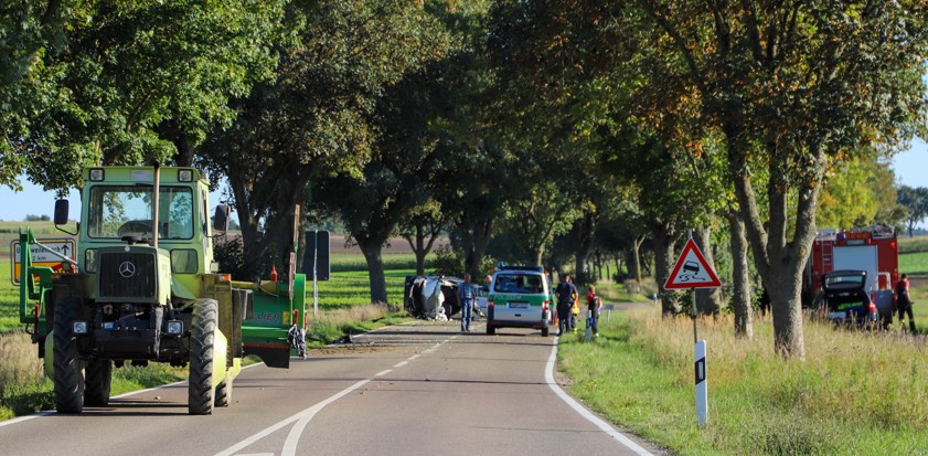 Pkw kollidierte auf der Staatsstraße zunächst mit einem Traktor und dann mit einem anderen Auto.
