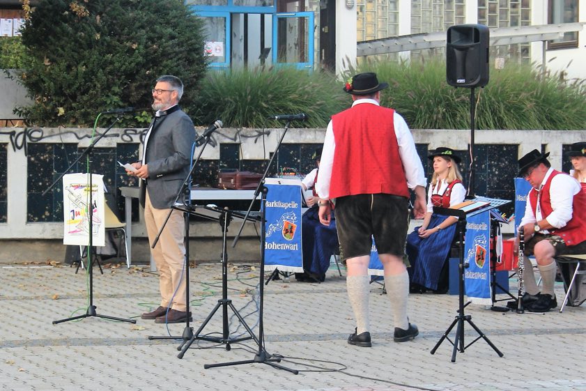 Nach einer kurzen Eröffnungsrede von Bürgermeister Jürgen Haindl (FW) begann das Konzert. Der Rathauschef freute sich sehr auf das Event, war es doch die erste kulturelle Veranstaltung in seiner Amtszeit. Trotz kurzer Vorbereitungszeit dauert das Konzert gut 1,5 Stunden. Es endete, mittlerweile war es schon Dunkel, nach einer vom Publikum geforderten Zugabe.