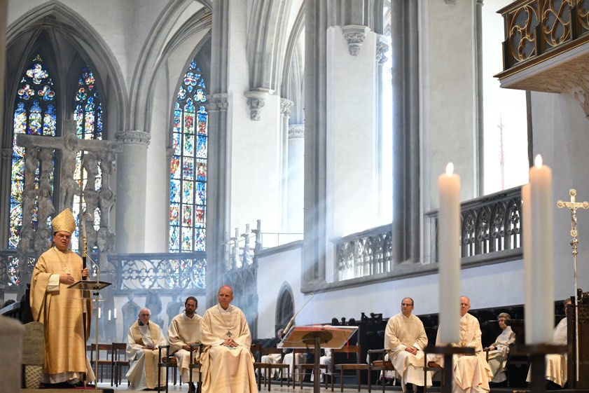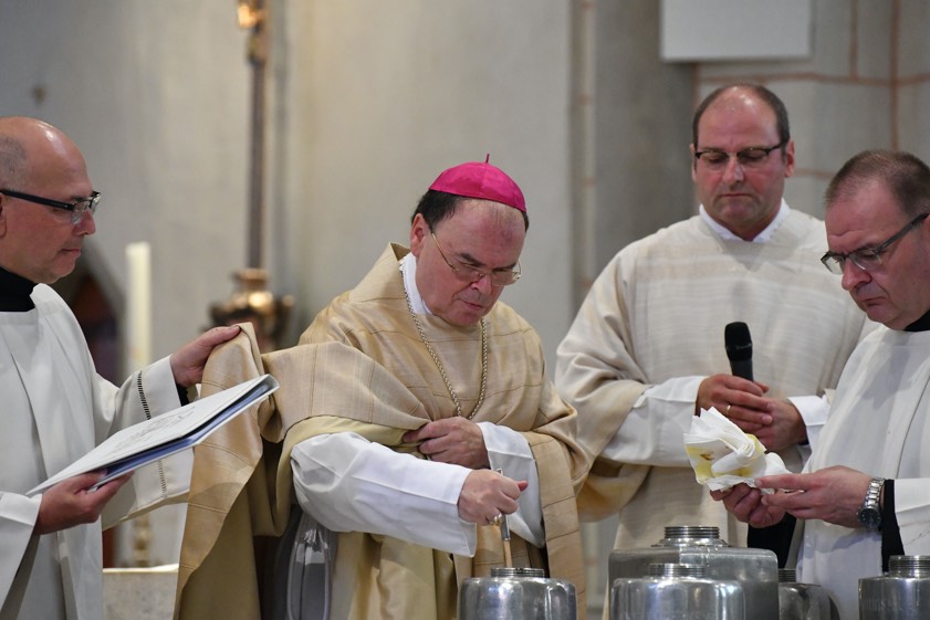 Er predigte im Rahmen der Chrisam-Messe im Augsburger Dom, die normalerweise in der Woche vor Ostern gefeiert wird – was in diesem Jahr jedoch nicht möglich war. Der Name der Chrisam-Messe nimmt Bezug auf die heiligen Öle, die bei der Taufe, Firmung, Weihe und Kranken-Salbung zum Einsatz kommen und die in dieser heiligen Messe für das ganze Bistum Augsburg geweiht werden. Zudem erneuern die anwesenden Priester gegenüber dem Bischof ihr Weihe-Versprechen. So waren unter den rund 250 Teilnehmern im Dom überwiegend Priester und Diakone aus allen Dekanaten der Diözese, zudem einige pastorale Mitarbeiter.